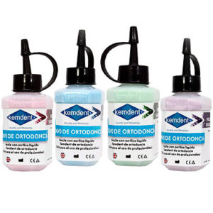 Acrílico de ortodoncia con diamantina de la marca Kemdent.