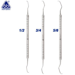 Instrumental para profilaxis dental hecho de acero inoxidable.