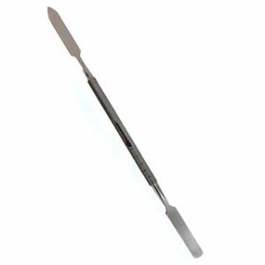 Espátula con doble punta activa, una con terminación en punta y la otra plana.